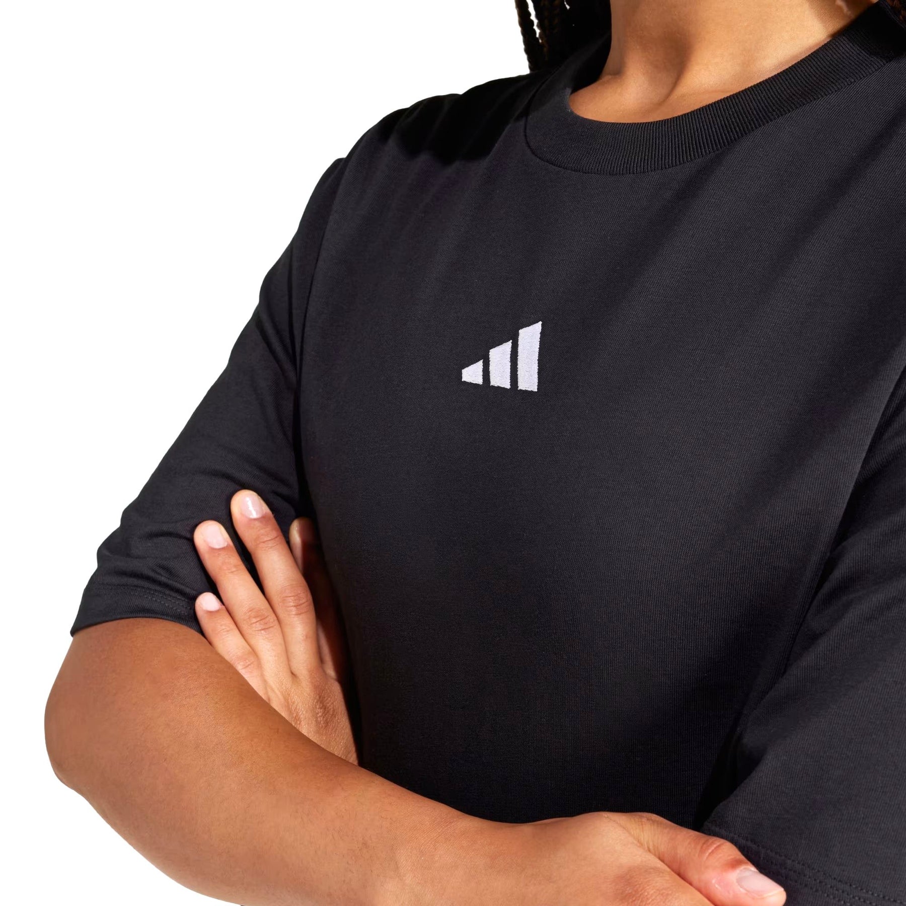 Il modello presenta una vestibilità ampia e rilassata che favorisce la massima libertà di movimento. Il look è completato dalle iconiche tre strisce bianche lungo le maniche e dal logo adidas posizionato centralmente sul petto, conferendo un tocco autentico e senza tempo. Perfetta da abbinare a leggings a vita alta o pantaloni sportivi, questa t-shirt combina funzionalità e tendenza in un unico capo versatile.