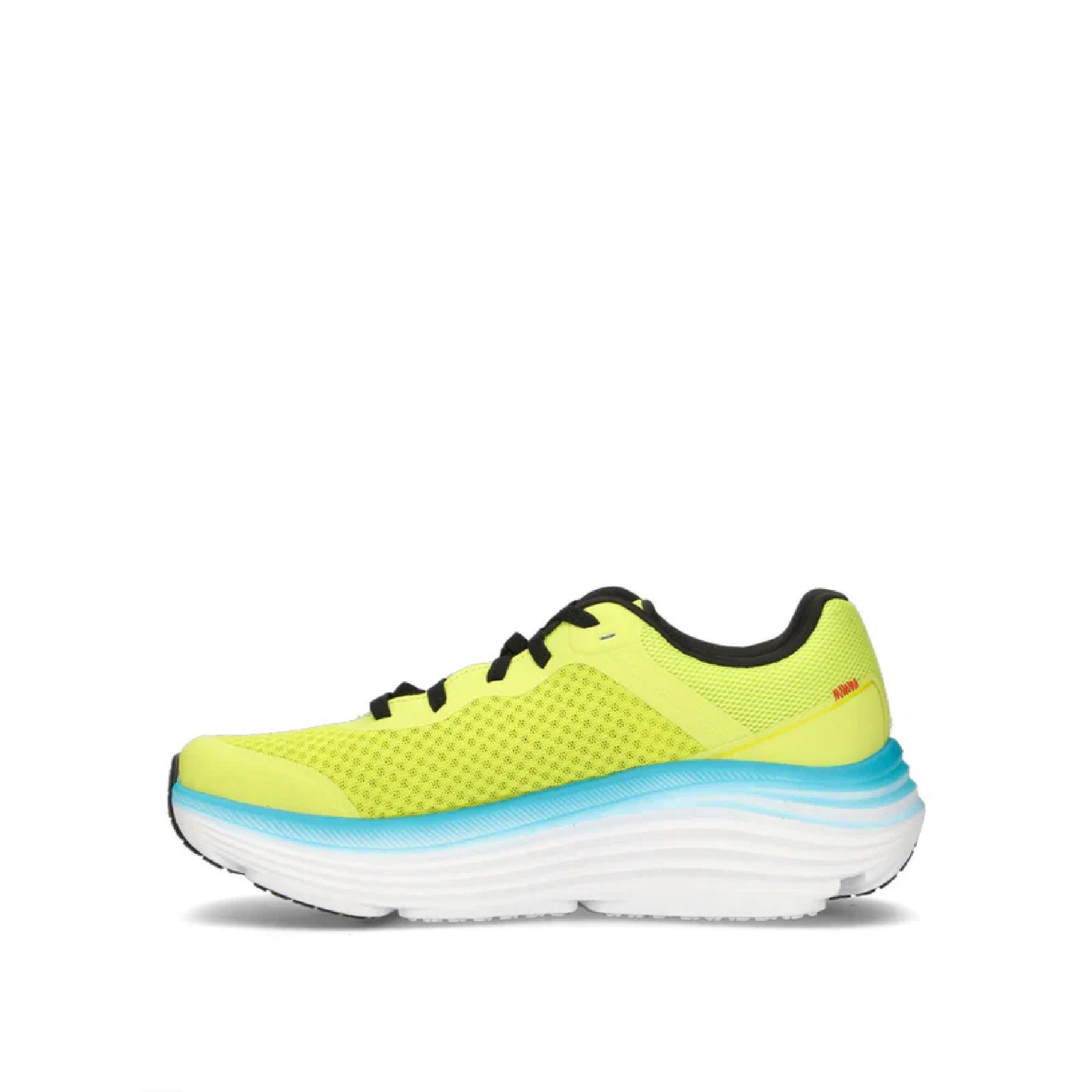 Il cuore di questo modello è l'intersuola Max Cushioning, caratterizzata da uno spessore generoso che assorbe gli impatti e garantisce un ritorno di energia fluido. Il design è impreziosito da sfumature azzurre sulla suola e dal classico logo "S" laterale. La chiusura con lacci neri a contrasto permette una calzata sicura, rendendole ideali per chi cerca una scarpa performante, leggera e dal look audace.